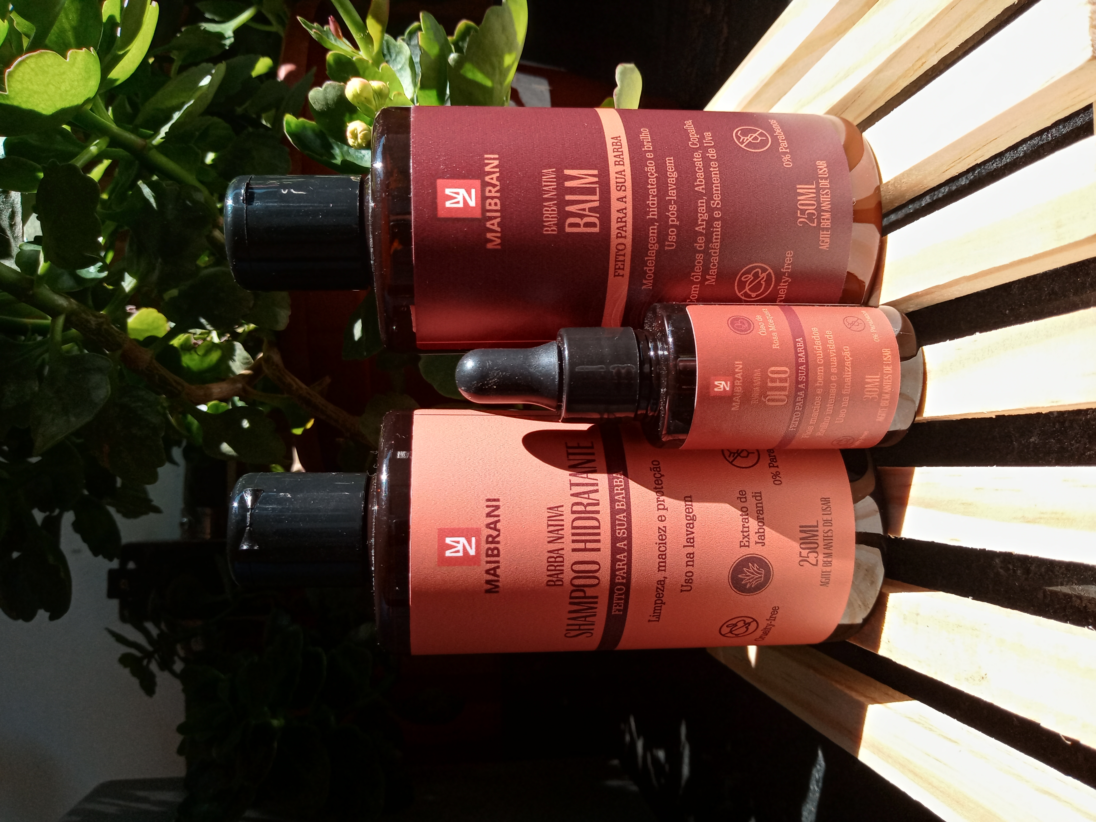 Transforme sua barba com o Kit Barba Nativa MAIBRANI! Shampoo hidratante 250ml limpa sem ressecar. O Balm 250ml, com blend de óleos, dá maciez e muita modelação para sua barba. O óleo 30ml com rosa mosqueta nutre profundamente.